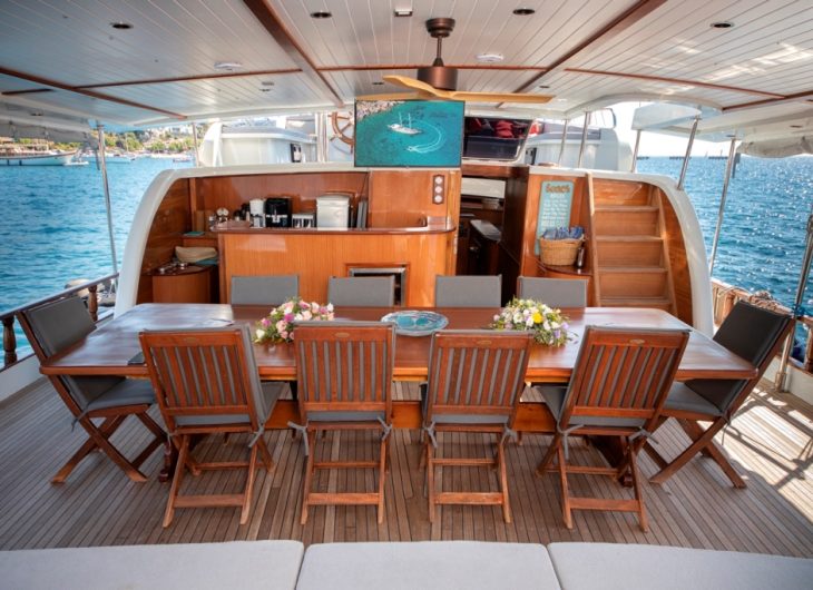 This gulet, built in 1999 is conveniently located in Milta Bodrum Marina, Bodrum - a great starting point for exploring Turkey by boat. This gulet was renovated in 2020. With 6 spacious and comfortable cabins, this gulet is an excellent choice for larger groups and parties celebrating special occasions. Choose this gulet if you’re after a unique, fun and hassle-free boat holiday experience together with up to 12 people.