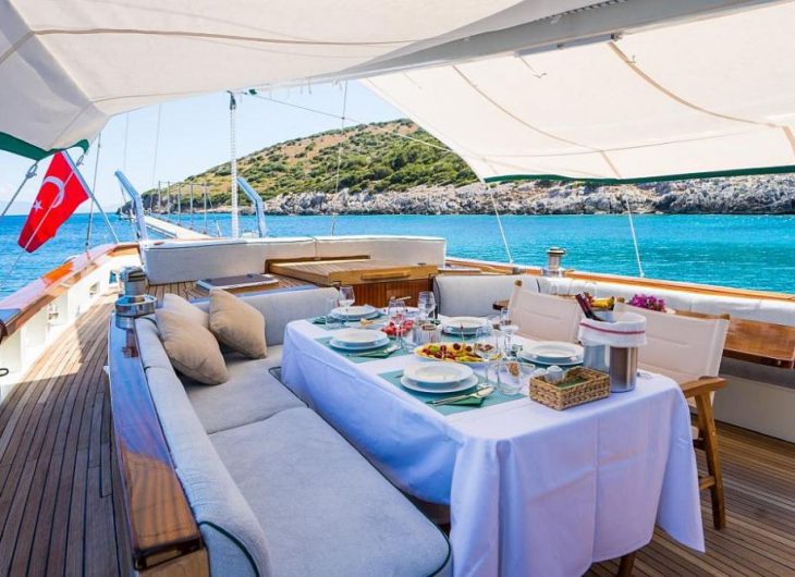 Indulge in the epitome of luxury aboard the A.ESER Ketch, where sophistication meets serenity amidst the tranquil waters.